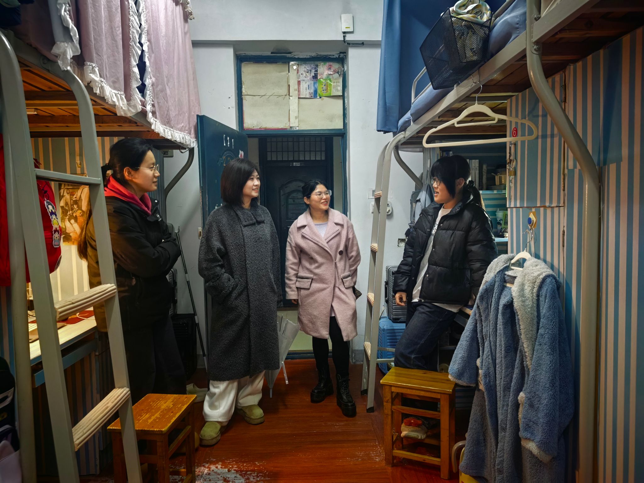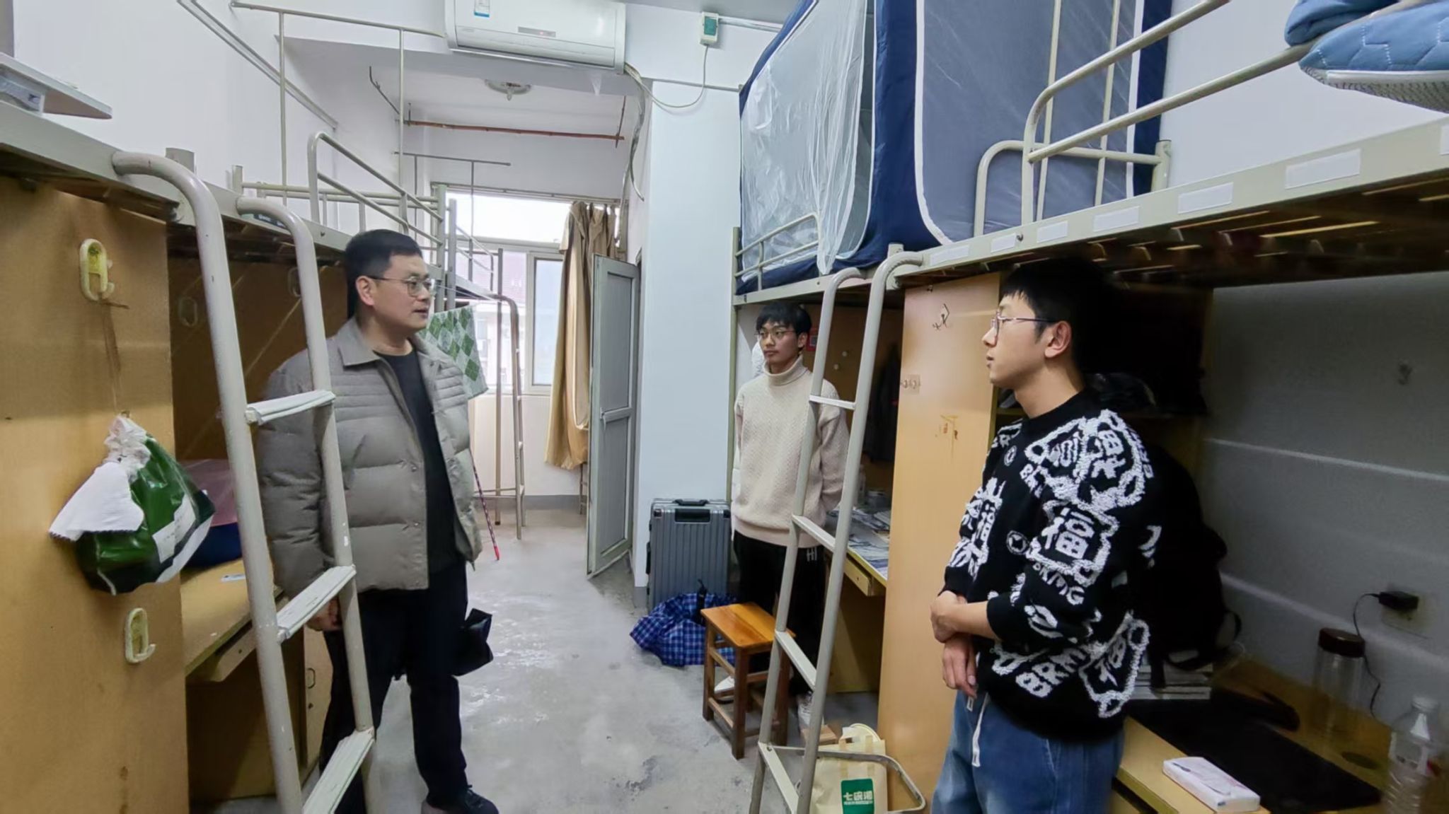 走访过程中,学院领导与辅导员们走进宿舍各个角落,与已返校学生亲切交流,细致询问同学们的假期生活、返校返程经历,以及新学期的展望与计划,并对宿舍内用电安全、消防设施、卫生状况等进行全面检查。学院领导叮嘱同学们要时刻树立安全防范意识,自觉遵守宿舍管理规定,共同营造安全、整洁、和谐的住宿环境。并指出,新学期要有新气象,希望同学们尽快调整好状态,以饱满的精神风貌投入新学期的学习和生活中。