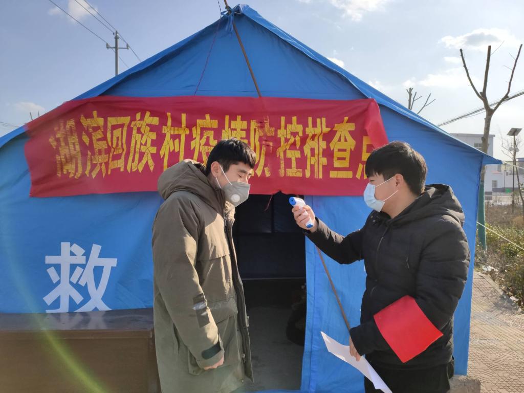 少数民族学生陶良路在寿县陶店回族乡疫情防控排查点参加志愿服务活动,每天守在卡口,做登记、量体温,严控防“疫”第一关。