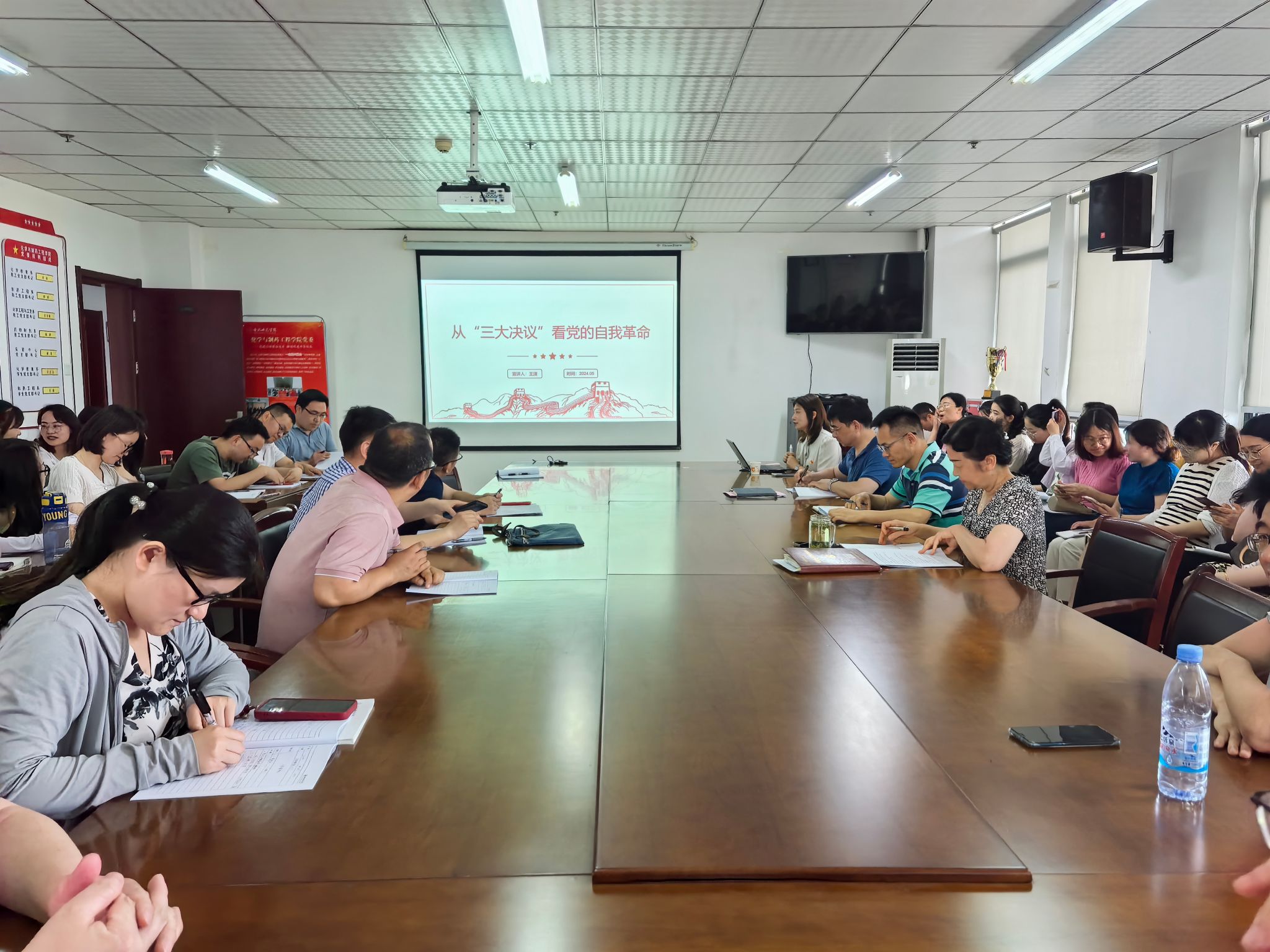 王潇以“”从‘三大决议’看党的自我革命”为主题,重点阐述三大历史决议内容及意义、自我革命话语涵义和文化依据、从三个历史决议看党的自我革命的重要经验等六个方面,结合真实的历史事件,深入浅出的讲解党在自我革命取得的历史成就,以及新时代深入推进党的自我革命,以永远在路上的坚韧和执着把党的自我革命进行到底。宣讲既有理论深度,也有历史厚度,与会教师表示受益良多。