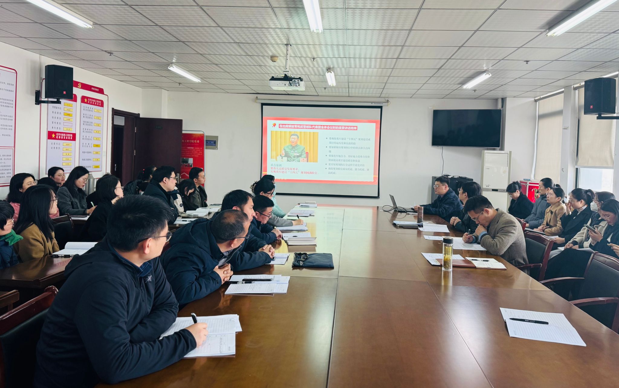 党课介绍了2025年全国两会的基本情况,领学了习近平总书记在两会期间的重要讲话精神及《政府工作报告》《人大常委会工作报告》《政协常委会工作报告》的主要内容,并就如何贯彻落实全国两会精神,立足岗位为全面收官“十四五”作贡献,向全体教师提出要求:一要提高政治站位,强化理论素养,坚持不懈用习近平新时代中国特色社会主义思想凝心铸魂;二要潜心教书育人,服务学生成长,一心一意培养更多德智体美劳全面发展的社会主义建设者和接班人;三要弘扬行知精神,提升业务能力,凝心聚力为学校全面建设应用特色高水平大学作贡献;四要强化融合共进,团结一心奋斗,坚定不移以高质量党建引领事业高质量发展。