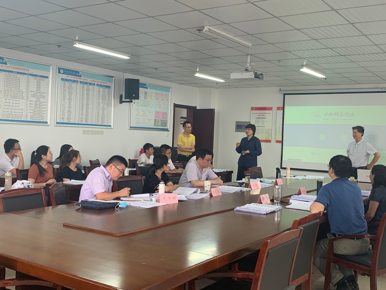 本网讯 6月2日上午,2020届学科教学(化学)教育硕士专业学位论文答辩会在化学与化学工程学院1402室举行。院长方东玲出席答辩会。答辩委员会主席由合肥市第六十五中学正高级教师、全国优秀名师工作室主持人、合肥市学科带头人江乐霄担任,答辩委员会成员由姚如富、董雄辎、朱金苗、姚成立、李红英、王方阔6位硕士生导师组成。2019级研究生参加答辩会。