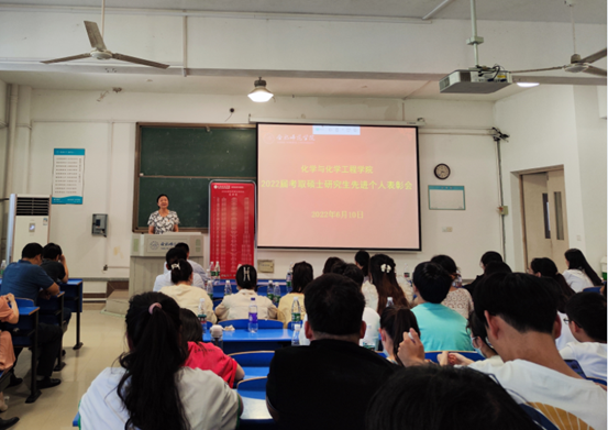 为进一步强化学风建设,持续提升就业质量,凸显优秀朋辈的示范作用,6月10日,化学与化学工程学院在锦绣校区逸夫楼A105教室召开2022届考取硕士研究生先进个人表彰大会。学院党政领导出席会议,各系(中心)主任、指导教师代表、毕业班辅导员、83位考取硕士研究生的毕业生参加会议。会议有学院党委副书记、院长董华泽主持。