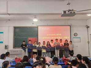 程华代表指导教师发言,祝贺学生们在本科阶段取得的优秀成绩,期待学生们坚定信心走好学习、科研的路,多向团队学习、多向导师请教、多进实验室,夯实专业基础,在新的领域中创造出才青春。2018级化学(师范)班学生刘慧玲代表全体考研学生发言,感谢学院为考研学生提供的良好平台、教师的倾情指导、辅导员的无私付出,表示要带着学院的关怀、老师们的教导再出发。
