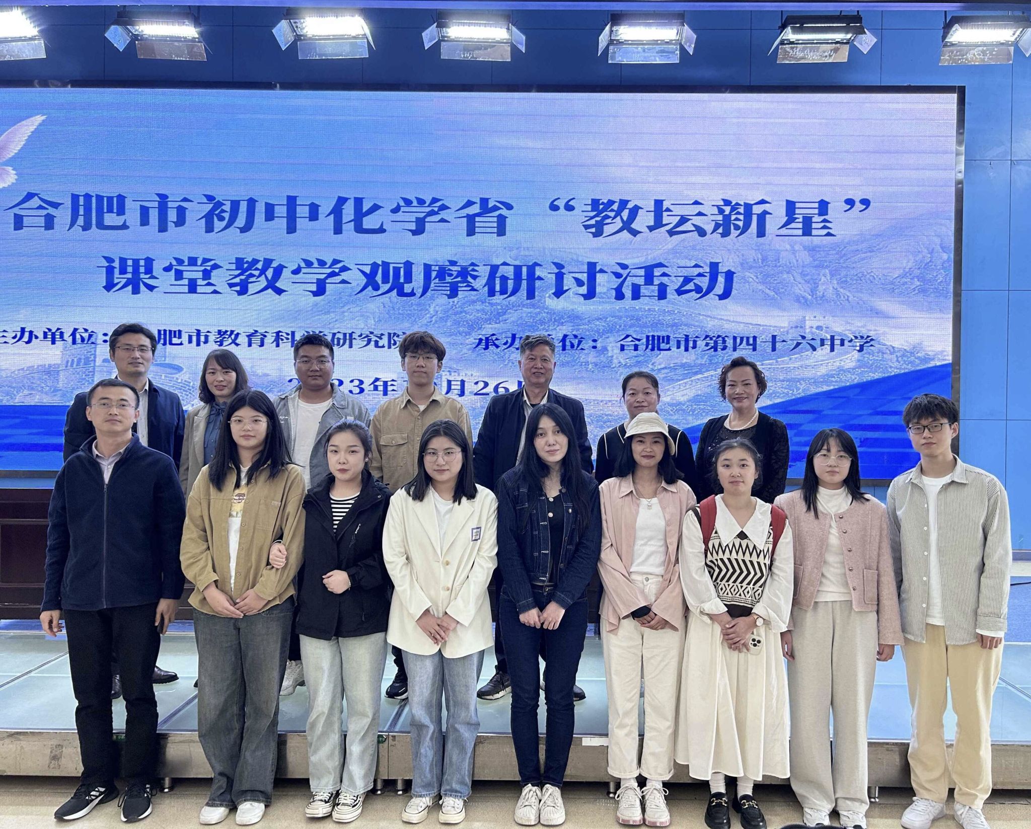 2023年10月26日,合肥市初中化学省“教坛新星”课堂教学观摩研讨活动在合肥第四十六中学召开,各县、市区共400余名教师参会。我院姚如富教授带领2023级学科教学(化学)专业研究生集中观摩。