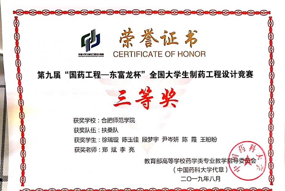 为了进一步检验制药工程专业教学效果、学生培养质量,达到以赛促学、以赛促教的目的,化学与化学工程学院再次组织学生参加全国大学生“制药工程杯”大赛,两个团队均获得了该赛事三等奖。