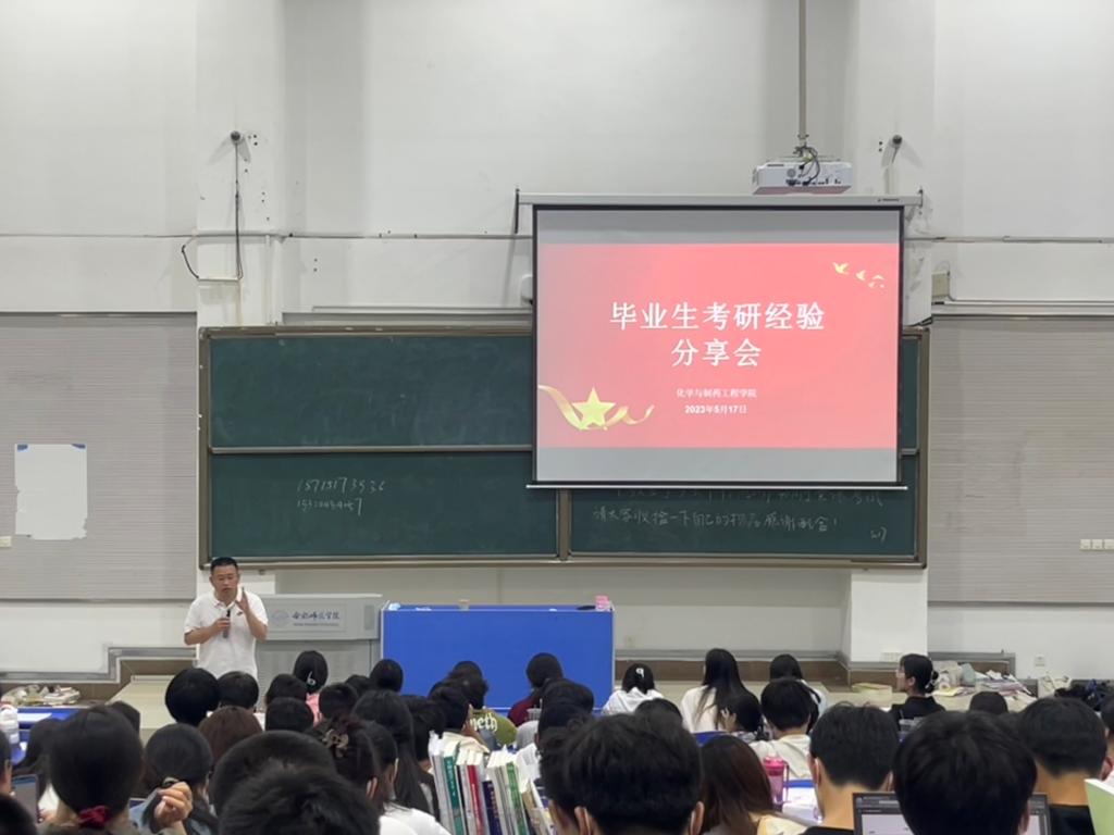 本网讯 为宣扬优秀学生事迹,激励更多的学生踔厉奋发,帮助学生端正心态,树立信心,合理规划未来,在学院形成优良学风。太阳成集团tyc41183于5月17日晚在逸夫楼西阶1教室举办考研经验分享暨国奖、励志报告会。本次报告会由2020级辅导员汪颖主持,汇报人有学院分团委书记张晖,国家励志奖学金获得者、2020级制药工程2班彭智群,国家奖学金获得者、2020级药物制剂班王喜,2019级制药工程(中外合作)班郭欣悦、及2019级化学工程与工艺班刘筱璇等四位同学。