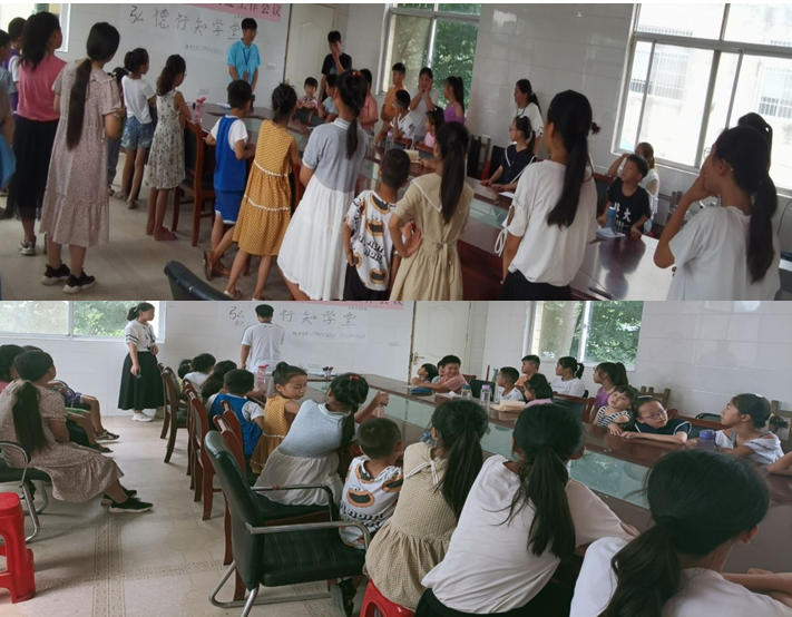 本网讯    近期,一场别开生动的开班仪式在安徽省蚌埠市高新区禹庙村居委会二楼举行,来自化学化工学院等三个学院的8位小先生、31名小学员齐聚一堂,共同迎接弘德行学堂的到来。