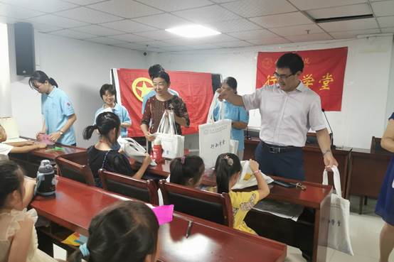 周端明亲切询问了小学员们的学习情况,并对小学员们热情好学和勤恳求知的态度表示赞扬。同时向小学员们赠送了精美的学习文具。