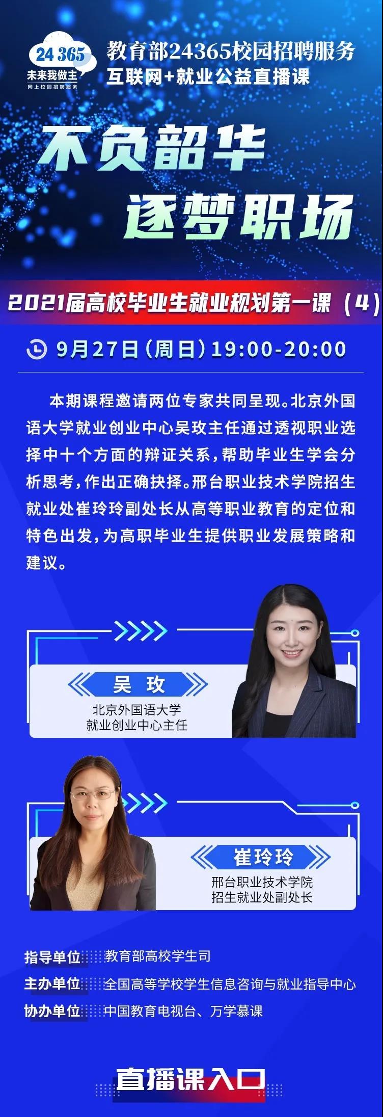 “应对疫情 就业服务”系列之五十二:教育部24365就业公益直播课:不负韶华 逐梦职场——2021届高校毕业生就业规划第一课(4)