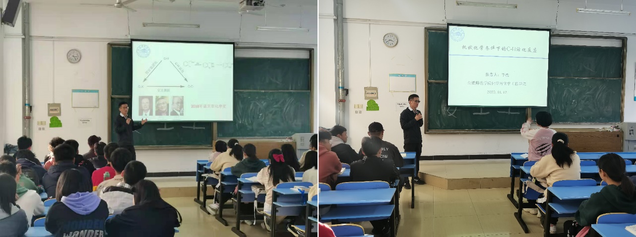 本网讯 2020年11月12日下午,制药工程系李亮博士在博约楼109教室作专题为“机械化学条件下的C-H活化反应”学术报告,2020级制药工程专业全体学生参加学术报告会。