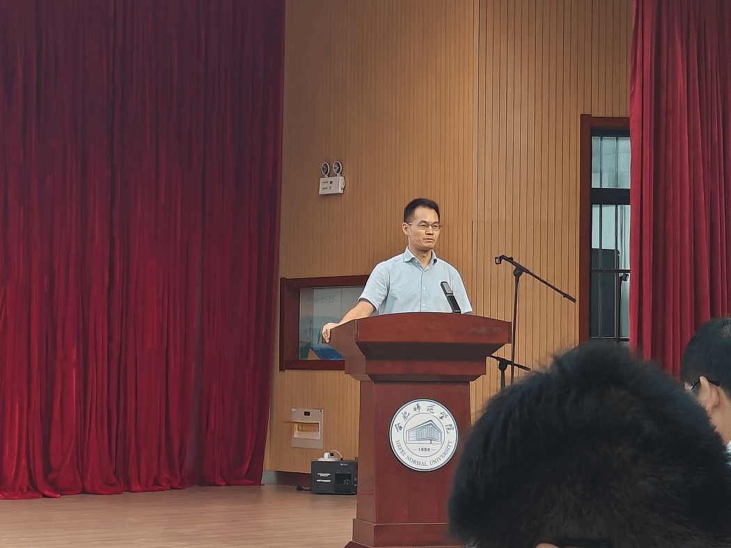 朱金苗教授就围绕新生的发展与目标做了发言,他指出:一是学院始终与时俱进,及时调整培养目标适应社会的发展,新生也应发扬蹈厉的奋斗前行精神,以服务社会为根本目标,顺势而为,勇攀高峰!二是提醒新生们被动堕落不可取,主动创新焕新生。朱金苗强调新生应明确自己的定位,主动思考,主动作为,养成自己独立的思维系统,用这四年来历练自己,完成蜕变!三是养成刻苦品质。朱金苗深入浅出地以考研同学早起抢座为例,告诫同学们克服懒惰的枷锁,尽快成长起来。