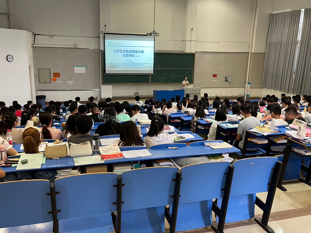 9月7日上午,化学与化学工程学院在逸夫楼西阶二教室开展电信网络防诈骗主题班会。辅导员翟媛媛从重要意义、诈骗手段与案例、警惕利诱被骗成帮凶、建议措施四个方面展开讲解,通过校内外真实案例的介绍引导学生提高防诈骗意识。引导新生下载国家反诈中心app,注册实名认证并开启来电预警,通过线上网络答题不断增强安全防范意识,提升自我保护水平。