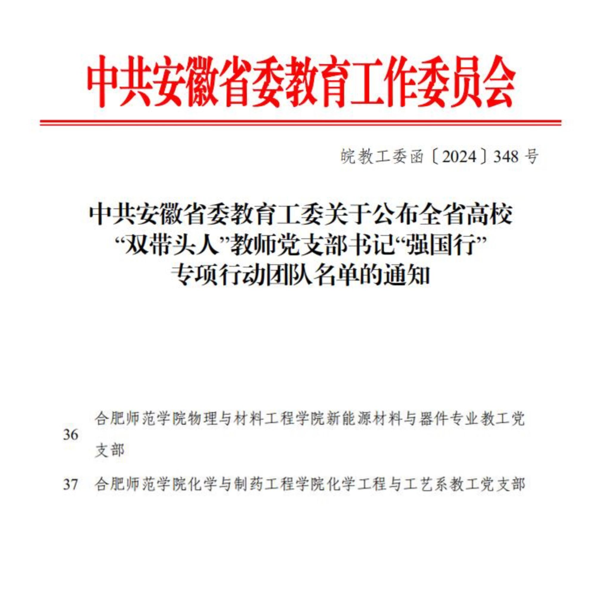近日,省委教育工委公布全省高校“双带头人”教师党支部书记“强国行”专项行动团队名单,我院化学工程与工艺系教工党支部成功入选。