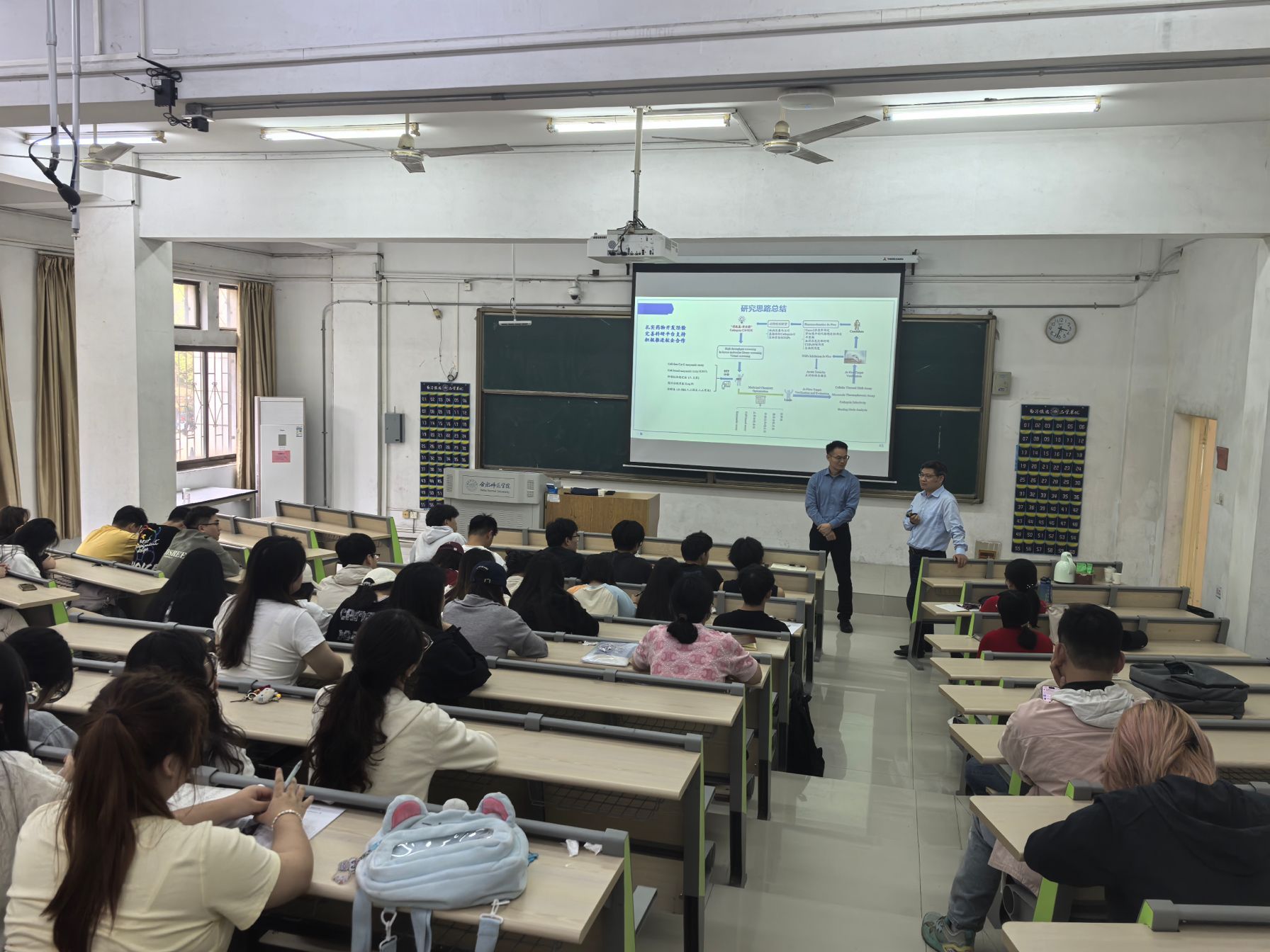 在互动环节,师生们积极提问,就药物合成中的科研思路、实验环节等问题与刘教授展开热烈讨论。江教授耐心解答,与师生们分享自己的科研见解和经验,现场气氛十分活跃。此次刘新华教授的来访,不仅为我院师生带来了前沿的学术知识,也为我院与安徽医科大学在学术交流、科研合作等方面搭建了良好的平台。(太阳成集团tyc41183:路艳珍)